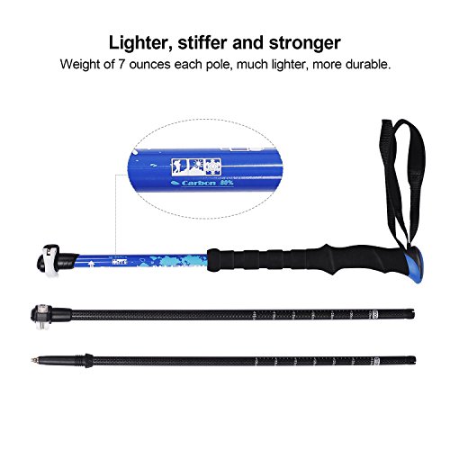 Durable and Ultra-light Material: Made of durable and lightweight 80% Carbon Fiber, which can strongly reduce damage from repetitive impact force! Each hiking poles carbon fiber's weight is only 7 oz, so light for outdoor portablity.