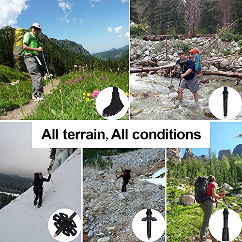 Multi-terrain: Tackle any terrain with the tungsten-tipped ends, removable rubber ferrules, and mud/snow baskets. Explore nature's beauty with increased balance, stability, and endurance!