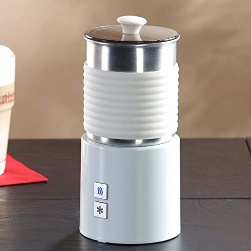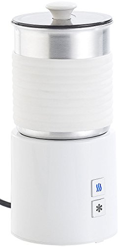 -. Feature : Elektrischer Milchaufschäumer mit abnehmbarem Behälter • Silikonmantel: hitzefest und rutschfest • Überhitzungsschutz: Das Gerät schaltet automatisch ab, wenn sich keine Milch darin befindet. • Stromversorgung der Basis: 230 V (Kabellänge: 50 cm, Schuko-Stecker) / Einfache Bedienung: ein Knopf für kalten, ein Knopf für heißen Milchschaum • Magnetische Quirlaufsätze: herausnehmbar für die einfache Reinigung • Füllmenge: 400 ml • Leistung: 550 W / Robuster Edelstahl und pflegeleichter Kunststoff • 2 Aufsätze: für heiße und kalte Milch • 360°-Sockel für besonders leichte Bedienbarkeit • Maße (Ø x H): 10,5 x 23 cm, wiegt 800 g / Kabelloser Milchbehälter aus gebürstetem Aluminium, innen antihaft-beschichtet • Praktisch: mit Markierung für Milchmengen • Ohne Griff für platzsparende Aufbewahrung / Milchschäumer inklusive Deckel, 2 Quirlaufsätzen und deutscher Anleitung