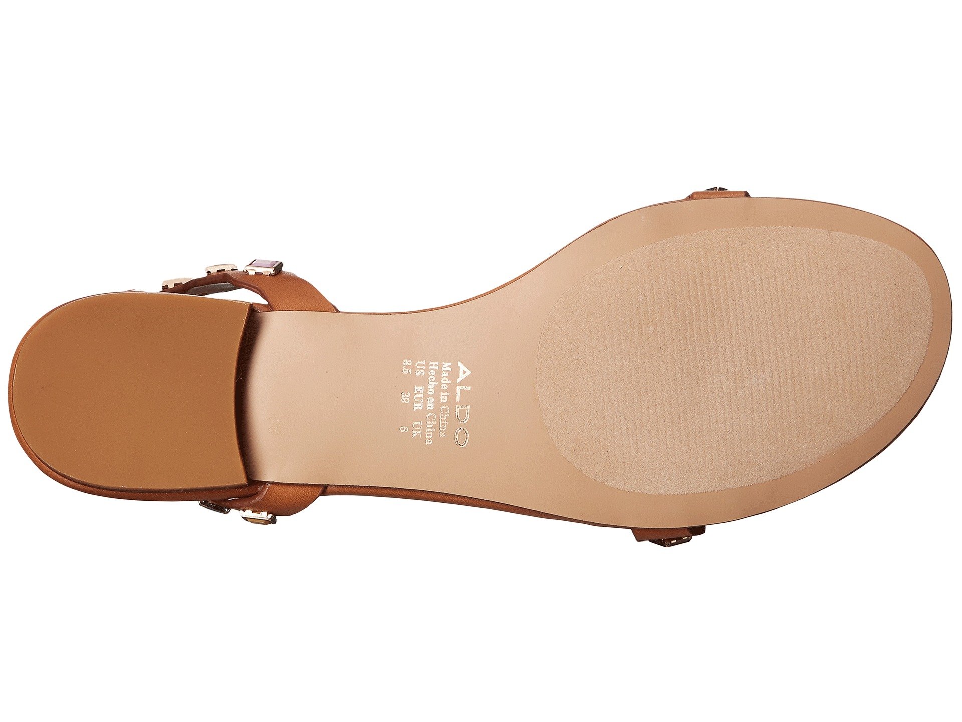 | Product Information SKU: #8929147Comfort and eye-catching style meet in this ultra-chic ALDO? sandal!Man-made upper features decorative crystal detail.Ankle strap with buckle closure.Open toe.Man-made lining.Lightly padded footbed.Low heel.Synthetic sole.Imported.Product measurements were taken using size 38 (US Women's 7.5), width B - Medium. Please note that measurements may vary by size.Weight of footwear is based on a single item, not a pair.Measurements: Heel Height: 3?4 in Weight: 6 oz |