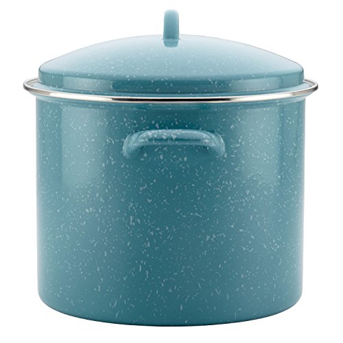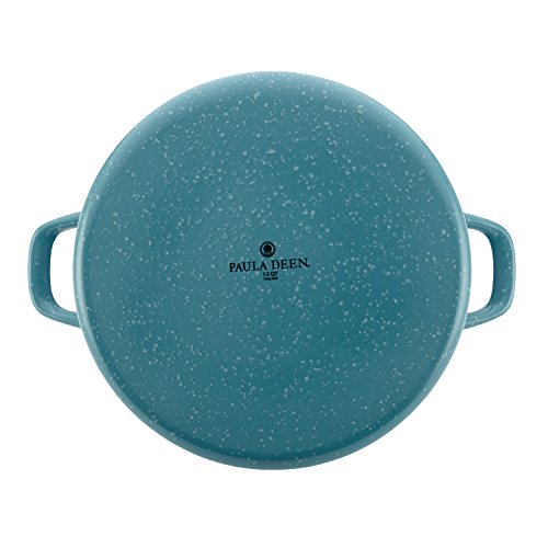 Grab hold of the generous and beautiful Paula Deen Enamel on Steel 12-Quart Covered Stockpot for a pot that delivers capacity cooking with traditional style and modern efficiency. The Paula Deen(r) Enamel on Steel collection puts a modern twist on classic pieces and this vintage-styled stockpot boasts a speckled exterior inspired by classic enamelware to add refreshing color to the kitchen. Like the pot's colorful exterior, the cream-colored enameled interior is stain resistant and easy to clean, so cooks can spend less time with after-cooking cleanup and more time with friends and family. This stockpot is outfitted with two sturdy side handles to help when moving the pot from one kitchen area to another even when it's filled and the snug-fitting lid seals in heat and moisture. Suitable for all stovetops, including induction, this generously-sized stockpot is ideal for making a double-batch of Paula's snappy Taco Soup or flavorful White Bean Chili. With such capacity, the stockpot is also great for boiling spaghetti for preparing a seafood boil for a big family dinner. Oven safe to 450, this covered stockpot is a great complement to other cookware and bakeware across the Paula Deen(r) kitchenware collections. Bring sturdy, long-lasting stovetop performance and a touch of vintage-inspired style to the kitchen with the vibrantly-colorful Paula Deen Enamel on Steel 12-Quart Covered Stockpot.Feature