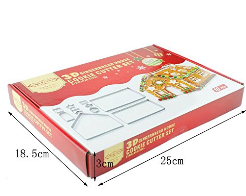 The Gingerbread House Cookie Cutter Kit comes with 10 pieces. Specific size look at the picture.