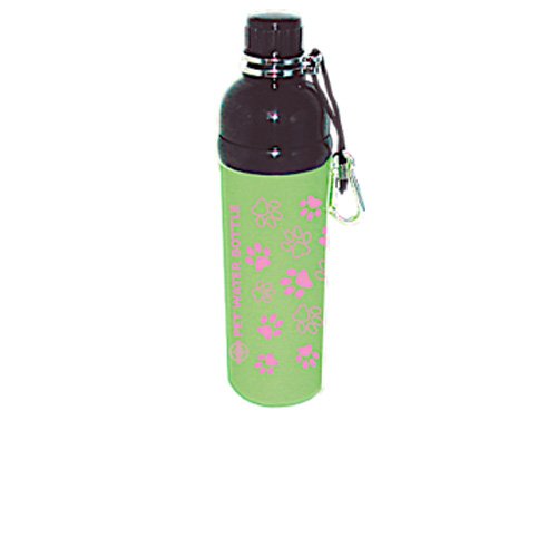 Good Life Gear Stainless Steel Pet Water Bottle, 24-Ounce, Green Puppy Paws Design