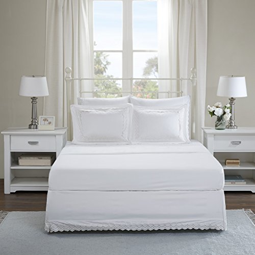 - Warm and welcoming, the Madison Park Essentials Scalloped Eyelet Embroidered Bed Skirt and Shams create a cozy and natural feeling in your bedroom. Scalloped lace embroidery is showcased around the hem of the bed skirt and shams for a charming and graceful look. Made from ultra-soft microfiber, this bedding collection completes your cottage décor and is machine washable for easy care. Set includes: 1 bed skirt and 1 sham.