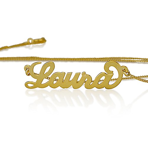 -. Feature : Personalize this 10k gold necklace with any name / Next, find this item in your Shopping Cart and select "Gift Options" / Type any name in the Gift Note box; it can be up to 10 characters with no spaces / Only 1st letter will be capitalized / Material: 10k solid gold with a 10k Pancer chain