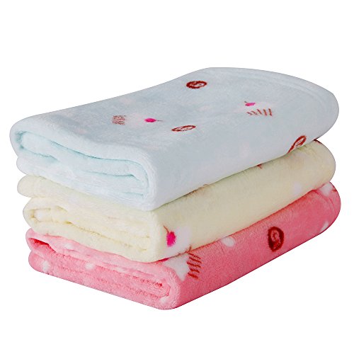 Specification Material: Flannel Color: Yellow/Blue/Pink Applicable Pets: Dogs, Cats, Rabbits, Hamsters and Other Small Pets Size: 27.5x18.9 Inches Item Weight: 330g (per blanket)