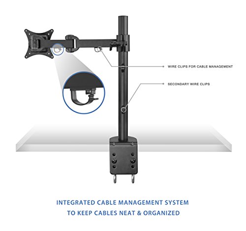 Mount-It! Monitor Arm Single LCD Monitor Desk Mount Stand Fully Adjustable Fits 20 21 23 24 27 30 32 Screens Height Adjustable Tilt Swivel Rotate, Clamp Base (MI-751)