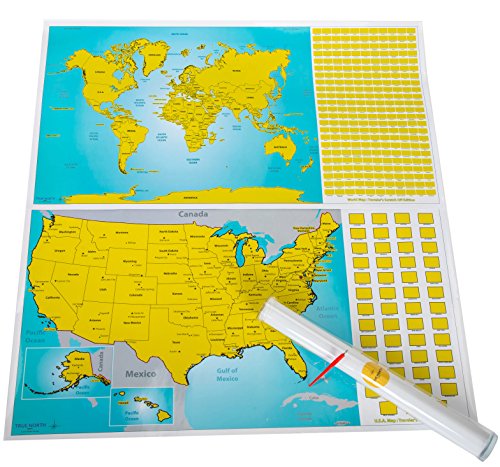 World and US Travel Tracker Map Set - Scratch Off Places You Visit!