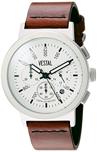 Vestal 'Retrofocus Chrono' Quartz Stainless Steel and Leather Dress Watch, Color Brown (Model: SLRCL001)