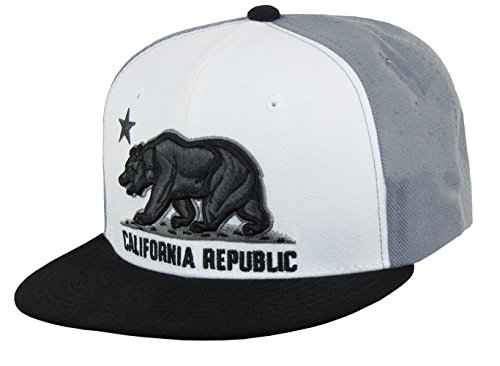 -. Binding : Apparel -. Brand : WHANG -. ClothingSize : One Size Fits Most -. Color : White/Black/Grey -. Department : mens -. Feature : Color: White/Black/Grey / 100% Acrylic / Bear sewn embroidery / California Republic text and star embroidery / Snap back closure -. MPN : STU3954 -. PartNumber : STU3954 -. ProductGroup : Apparel -. ProductTypeName : HAT -. Size : One Size Fits Most -. Title : California Republic Flat Bill Snapback by WHANG (White/Black/Grey)