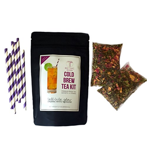 -. Binding : Misc. -. Brand : Big T NYC -. EAN : 0811618020195 -. Feature : COLD BREW TEA WHITE TEA: Our Cold Brew tea set includes 2 pre packed sachets of our premium organic white tea tea and 8 straws, ready to be infused to make the perfect cup of iced tea for the summer / COLD BREW TEA LOOSE LEAF: Steep one sachet of loose leaf tea in 1 quart of water, let sit for 8-12 hours and then enjoy a refreshing and tasty cup of iced White tea / FILLED WITH ANTIOXIDANTS AND ZERO CALORIES - Naturally high in antioxidants and zero calories, this "super" tea will keep you on your feet and looking your best. / ENHANCE YOUR SKIN'S APPEARANCE - Our White Tea Loose Leaf blend will keep your skin looking amazing while fighting against skin-damaging free radicals. / KEEP THAT LATE NIGHT GLOW ALL DAY - The Tell Tale Glow name comes from the feeling and look you get. Consider this your secret weapon to keeping your skin glowing all day long. -. IsAdultProduct : 0 -. Label : BIG T NYC -. Manufacturer : BIG T NYC -. PackageQuantity : 1 -. ProductGroup : Grocery -. ProductTypeName : GROCERY -. Publisher : BIG T NYC -. Studio : BIG T NYC -. Title : BIG T NYC Tell-Tale Glow Cold Brew Tea Kit Includes: 2 Sachets Of Premium Organic Loose Leaf White Tea and Straws -. UPC : 811618020195