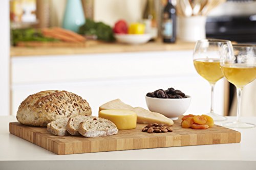 DOUBLE-SIDED BAMBOO CUTTING & PRESENTATION BOARD | *Chop, cut and mince on side with juice groove. | *Flip board over for presenting cheeses, breads and and appetizers on flat side.