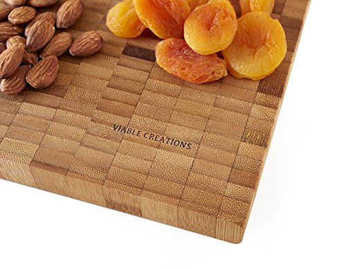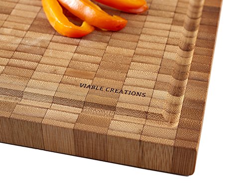 Large Wood Cutting Board - Handcrafted End-Grain Bamboo Cutting & Presentation Board 18" x 12" x 1" THICK w/Deep Juice Groove by Viable Creations