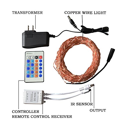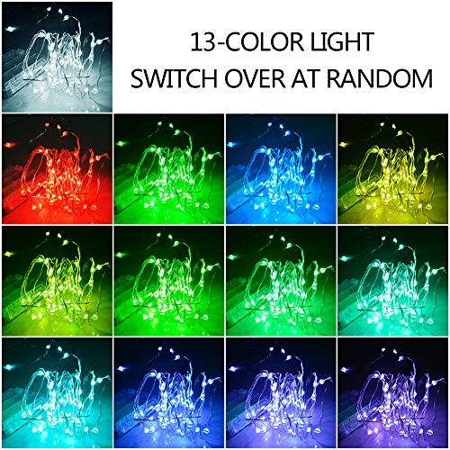 -. Feature : LED STRING LIGHTS: 13 individual colors for choosing( color changing light), two lighting modes: fade or jump.Multi color gently fade or joyfully jump will be your best choic / REMOTE CONTROL STARRY STRING LIGHT: with timer function and brightness level control. Made of copper wire lights energy efficient, it won't be overheating although long time using; Easy to operate, swtch colors or light modes by pressing one button / BATTERY POWERED STRING LIGHTS: 3 AA battery required ( not included ), lightweight and convenient for carrying. With high quality, can be wrapped around stairs, furniture, balcony, bedroom, fence, garden, vase, bottles or even metal railings / IP44 WATERPROOF: Waterproof battery case and waterproof insulated silver wire; Perfect for outdoor use, like patio, lawn, garden, Christmas tree, party, wedding etc. / QUALITY WARRANTIED BEDROOM STRING LIGHT: Email us freely if you have any problem, we offer 1 year's free warranty.