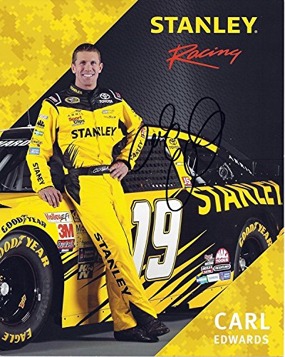 AUTOGRAPHED 2016 Carl Edwards #19 Stanley Racing Team (Sprint Cup Series) Joe Gibbs Toyota Camry Signed Picture NASCAR Mini Hero Card Photo with COA
