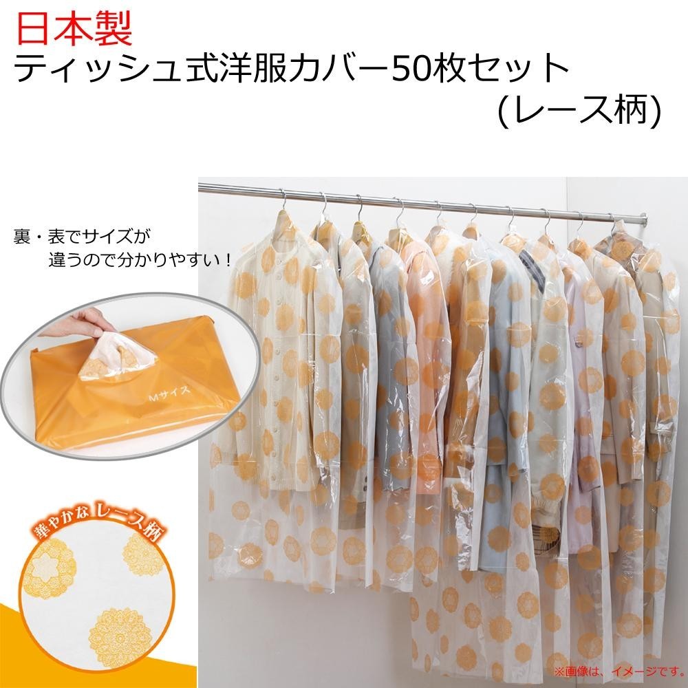 | 50枚入りの収納ケースからティッシュのように必要な分だけ1枚ずつ取り出せます。収納ケースの表面からはショートサイズ、裏面からはロングサイズと取り出し口もサイズ別に違うので使いたいサイズをすぐに取り出せます。背面は通気性の良い不織布、表面は中身が一目で確認できる可愛い柄入りの透明フィルムです。ジャケットやブルゾンの収納にはショートサイズ、ワンピースやコートの収納にはロングサイズと使い分けできます。 |