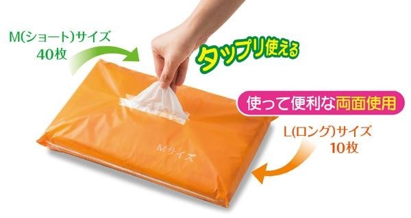 50枚入りの収納ケースからティッシュのように必要な分だけ1枚ずつ取り出せます。収納ケースの表面からはショートサイズ、裏面からはロングサイズと取り出し口もサイズ別に違うので使いたいサイズをすぐに取り出せます。背面は通気性の良い不織布、表面は中身が一目で確認できる可愛い柄入りの透明フィルムです。ジャケットやブルゾンの収納にはショートサイズ、ワンピースやコートの収納にはロングサイズと使い分けできます。 |