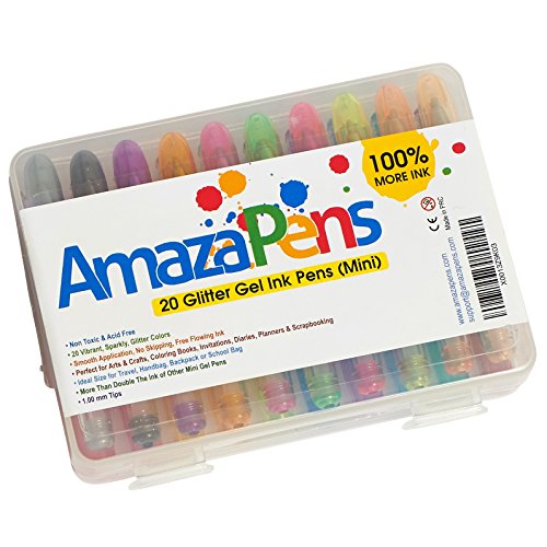 Glitter Gel Pens - Mini 20 Pack with Maximum Ink & Carry Case Best for Purse or School Bag for Sparkle on the Go Perfect Gift for Portable Coloring and Instant Inspiration