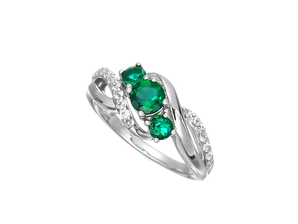 10k White Gold Created Gemstone and White Sapphire Three-Stone Ring, Size 7
