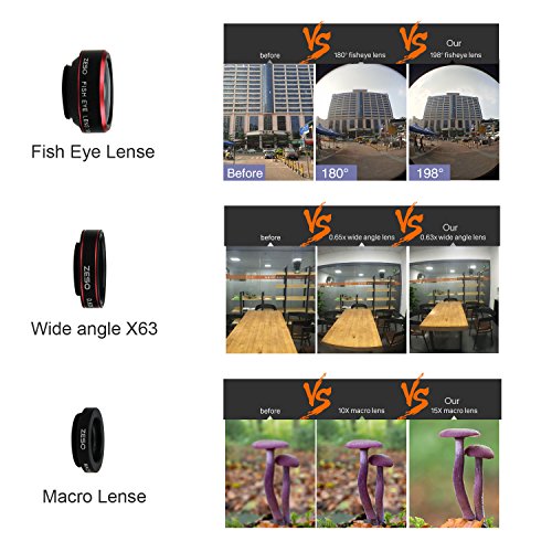 THE PERFECT AMAZING GIFT BY ZESO: SUPER FISH EYE CAMERA LENS KIT - This super fisheye camera lens 3-In-1 KIT- Fisheye lens (see the world in a large range of 198 degree from the right to the left) Macro lens (15X Macro lens to explore the invisible world) Wide Angle Lens (have more of the scene to be included in the photograph) have recently been called the #1 cellphone camera lens kit on the market!