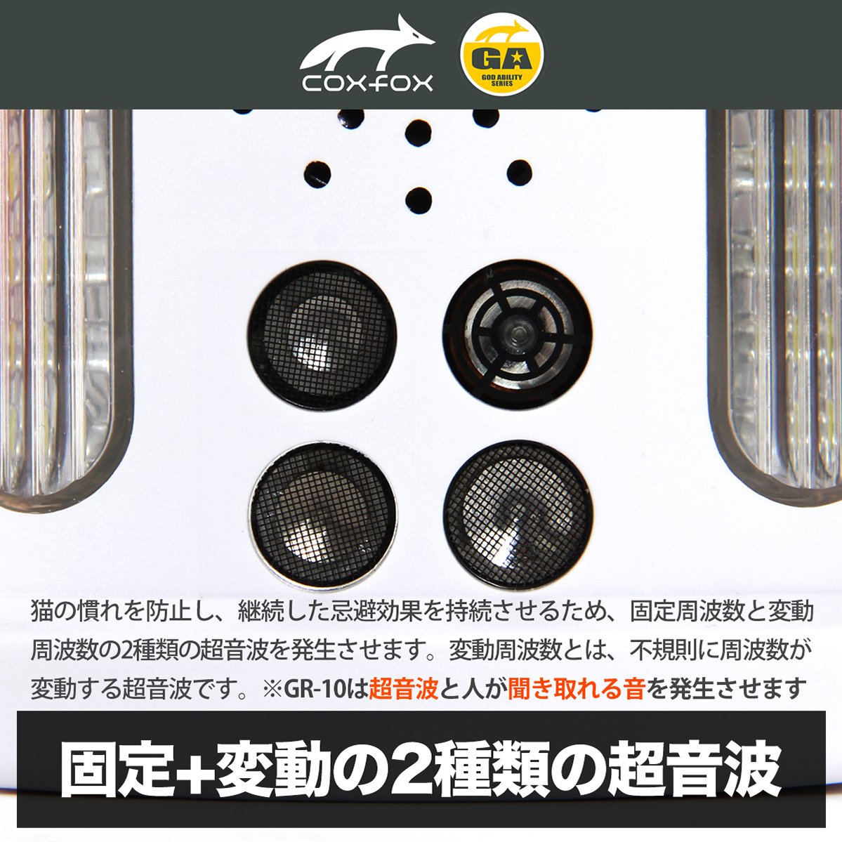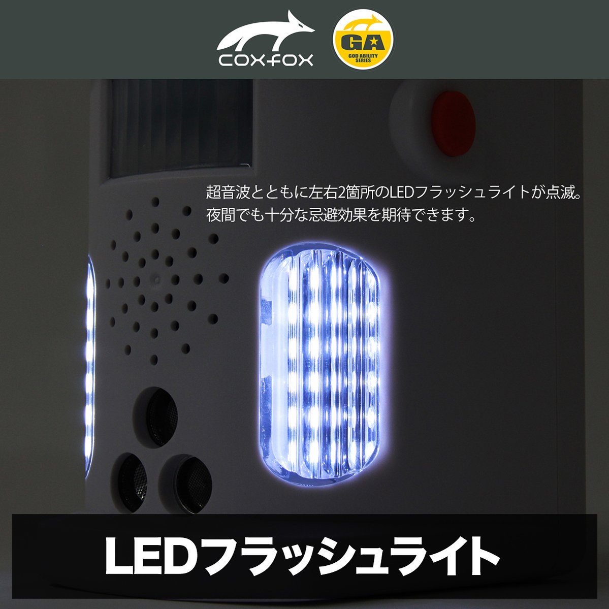 With two types of ultrasonic waves, the left and right LED flash lights blink, and you can expect a sufficient repellent effect even at night.