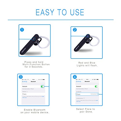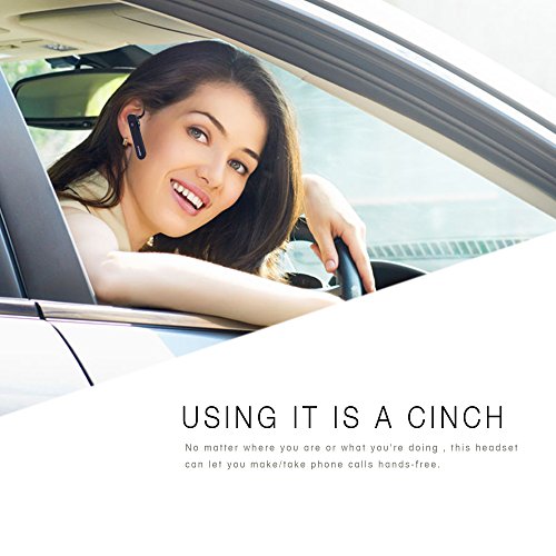 -. Feature : CLEAR AS CRYSTAL: That pretty much sums up the superb sound quality for this headset. With the built-in noise-cancelling microphone, each and every one of your conversations comes through without any echo or murkiness. That goes for any environment, whether you're lounging at home or jogging down your local trails. / PAIRING IS EASY AS ONE, TWO, THREE: You can get connected in seconds, no matter where you are - which makes it easy for you to make or take calls while on the go. Plus, with Voice Prompt software and an LED Indicator, managing/charging this device is a breeze. / COMFORTABLE AND LIGHTWEIGHT: No need to worry about headaches or strain - this headset is ultra-light, compact, and designed with your comfort in mind. The fully adjustable ear hook and soft gel earbuds enables you to get the right fit every time. / WHAT DOES IT WORK WITH? The answer - pretty much any Bluetooth capable device! The multi-point technology allows for pairing with iPhone 6 / 6 Plus /5 / 5c / 5s / 4, Samsung Galaxy, Note,Nexus 5, LG Optimus G2/G3, HTC, PS3, iPad Air, Kindle Fire HD, and many more. Tech junkies, this is the headset for you. / USING IT IS A CINCH: Look, ma, no hands! No matter where you are or what you're doing, this headset is designed so you can make/take calls hands-free. Plus, with the user-friendly interface, you can also control all settings and audio right from your phone for smooth and easy usage. Best of all, you're backed by our 100% SATISFACTION GUARANTEE: Either you love this product, or we'll return every penny - simple as that!