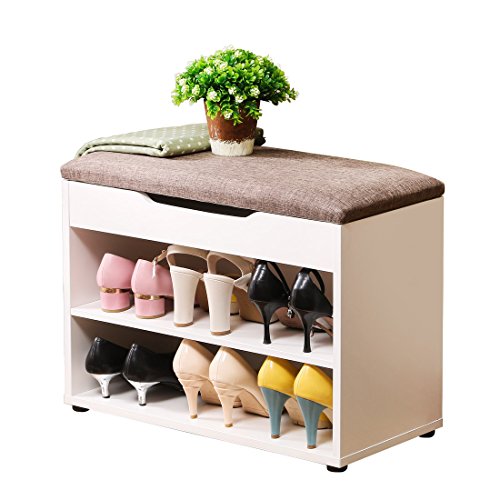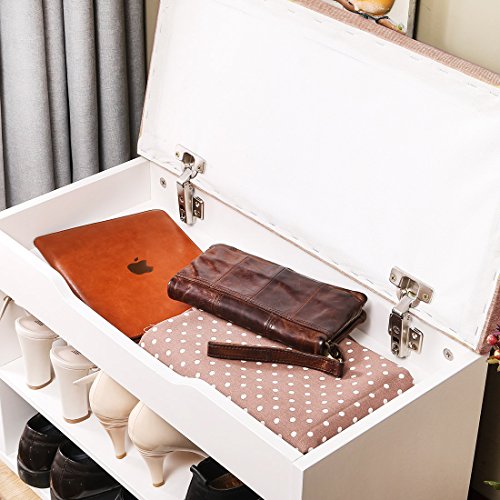 -. Feature : This storage bench size: 60×30×45CM (23.6"L× 11.8"W ×17.7"H), weight 22kg, Comfortable height for sitting & resting. / High Quality Material: Soft linen cushion, comfortable and thickened shaving board/MFB, enhance stability, strong and durable. / Elegant Design: Modern simple fashion, fits all different indoor environment. This shoe bench can storage 2-3 pairs shoes each tier. / Multi-function more practical: Very comfort to sit, can be used as feet pad, can be also used as a sofa stool in friends party. / Hidden storage space - Spacious hidden storage room for sundries including shoes, blankets, de-cluttering your entryway & bedroom