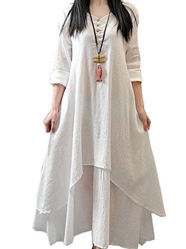 -. Feature : ヒッピーな雰囲気漂うリネンロングワンピースです。肌に優しく軽い素材を使用しております。 / これ一枚でベーシックなAラインシルエットを形づくり、シンプルかつレイヤードが特徴的なアイテムとなっております。 / ゆったりとしたシルエットから女性らしさの演出、体型カバーを期待できます。 / サイズ : 【M】胸囲92cm 着丈136cm 袖丈50cm 肩幅37cm 【L】胸囲94cm 着丈137cm 袖丈51cm 肩幅38cm / カラー (3色) : ホワイト ブラウン カーキ