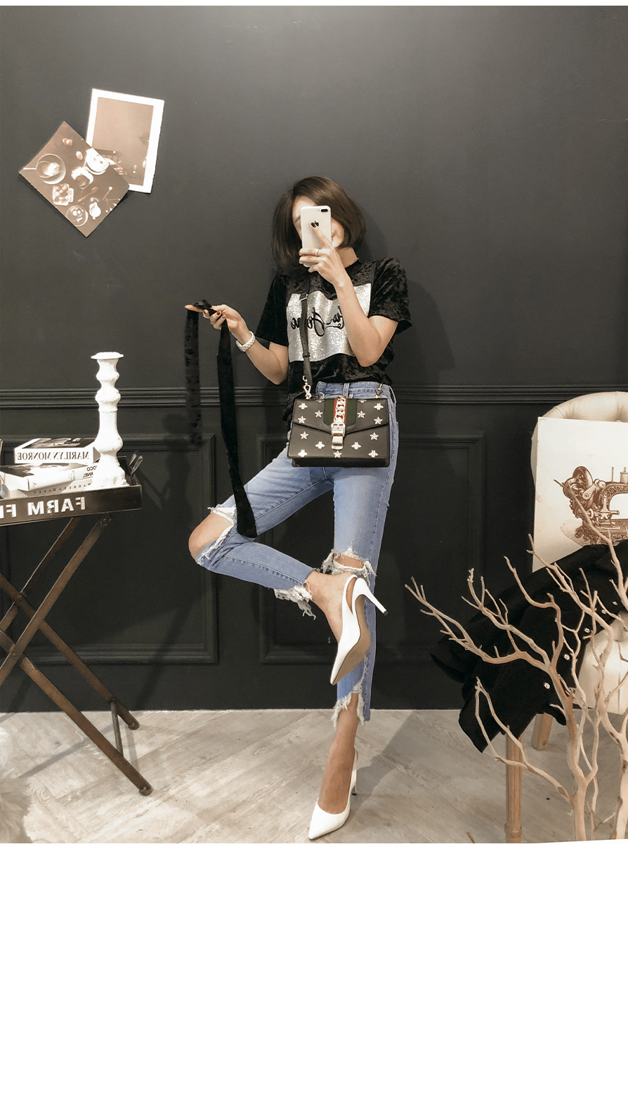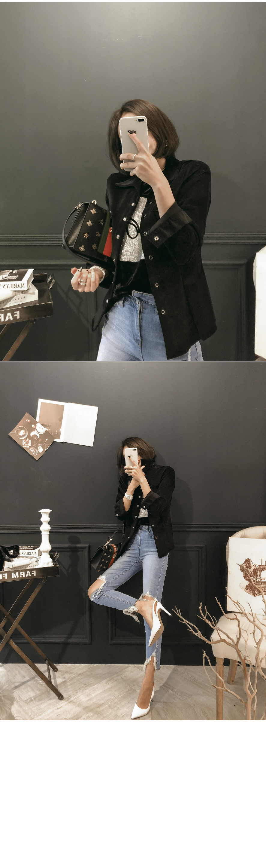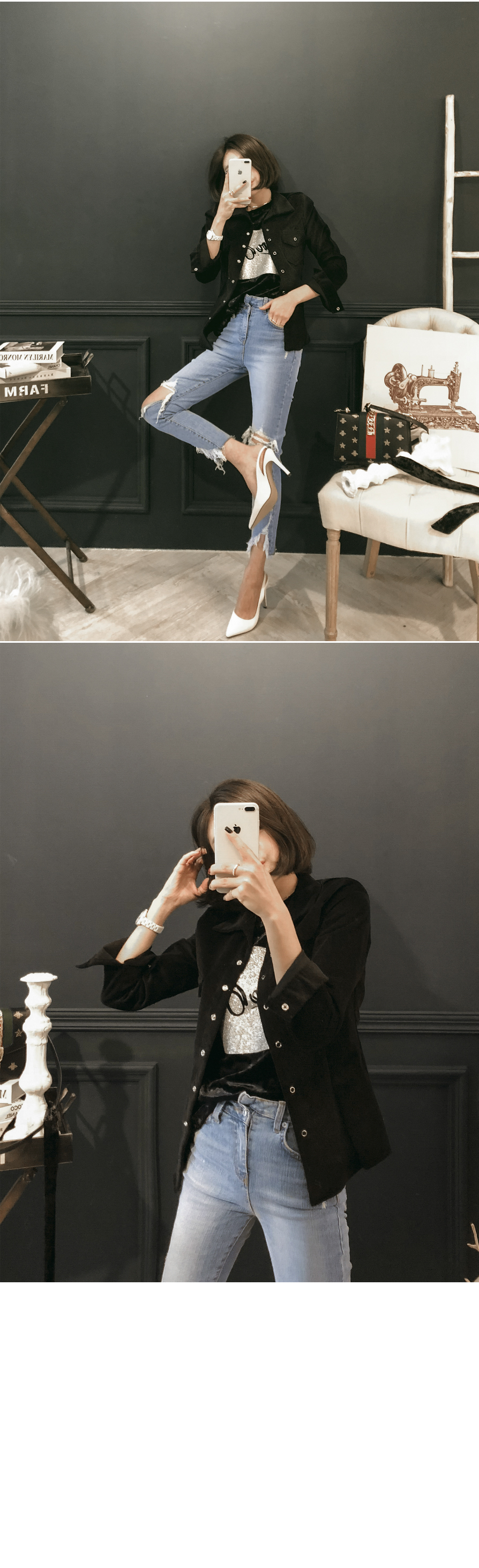 프론트라인의 펄과 레터링으로 트렌디한 포인트를 주었답니다