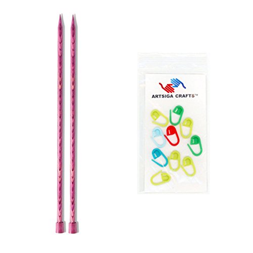 [Product Information]- Bundle includes 1 Knitter's Pride Dreamz Single Point 10-inch (25cm) Knitting Needles; Size US 4 (3.5mm) with 10 Artsiga Crafts Stitch Markers 200403