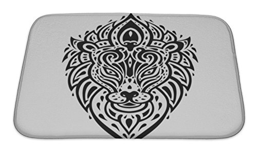 Gear New No Slip Microfiber Memory Foam Lions Head Tribal Pattern Bath Rug Mat, 24" X 17"