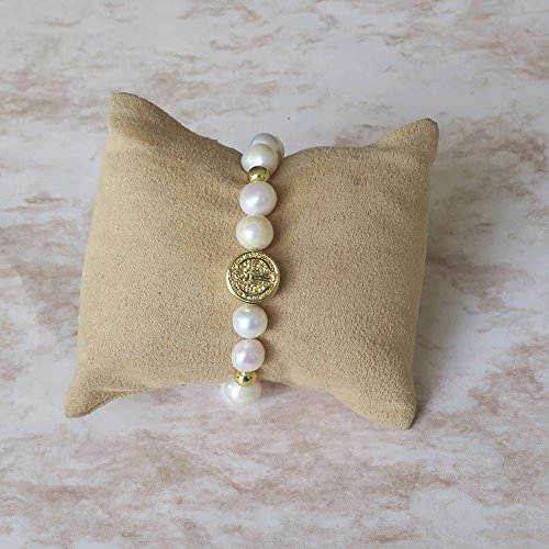 -. Feature : Beautiful Pearl Bracelet With San Benito Medal