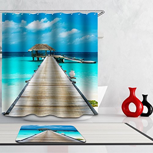 PinsPrint Waterproof Polyester Blue Sky And Sea Beach Shower Curtain Size 72" W By 72" L