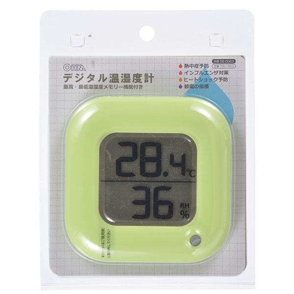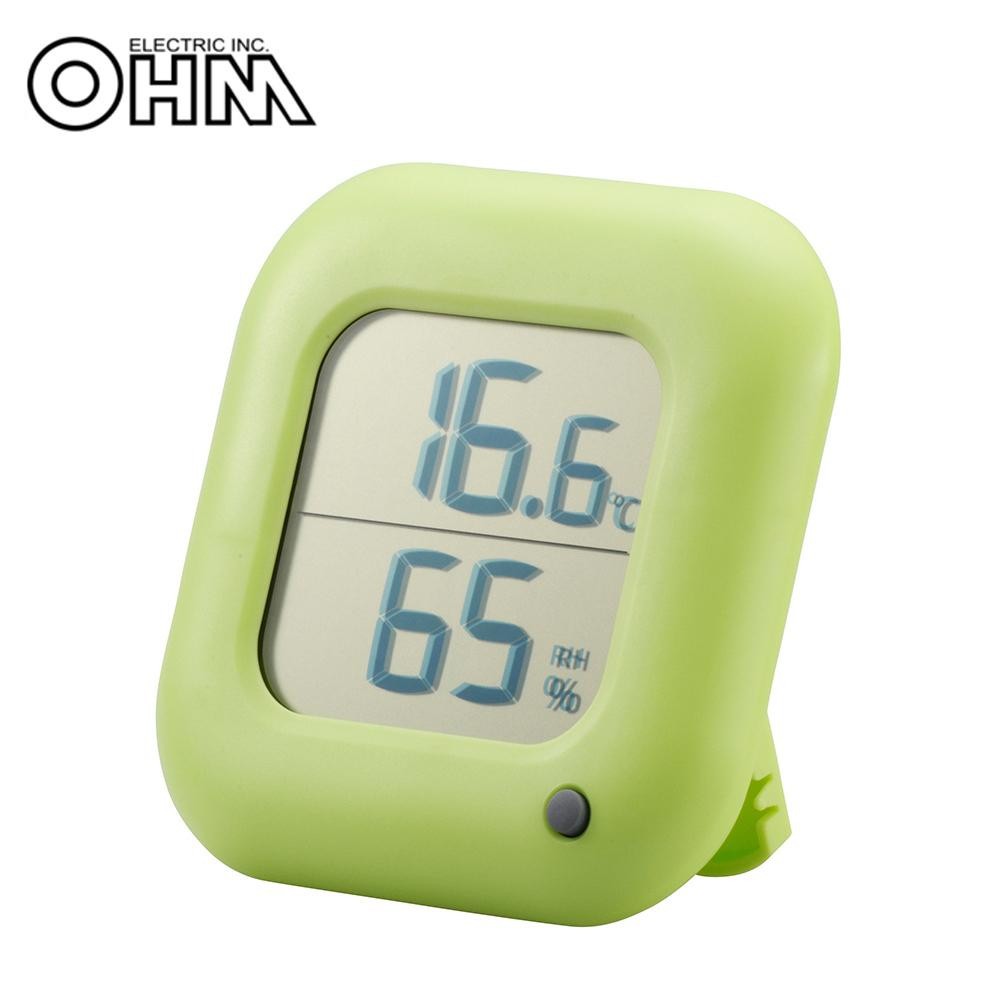 熱中症予防やインフルエンザ対策など、年中使えるデジタル温湿度計☆最高・最低温湿度を表示するメモリー機能付きです。 製造国:中国 ※サプライヤー直送品 ご注文後2~3営業日後の出荷となります【商品名】オーム電機 OHM デジタル温湿度計 緑 TEM-100-G