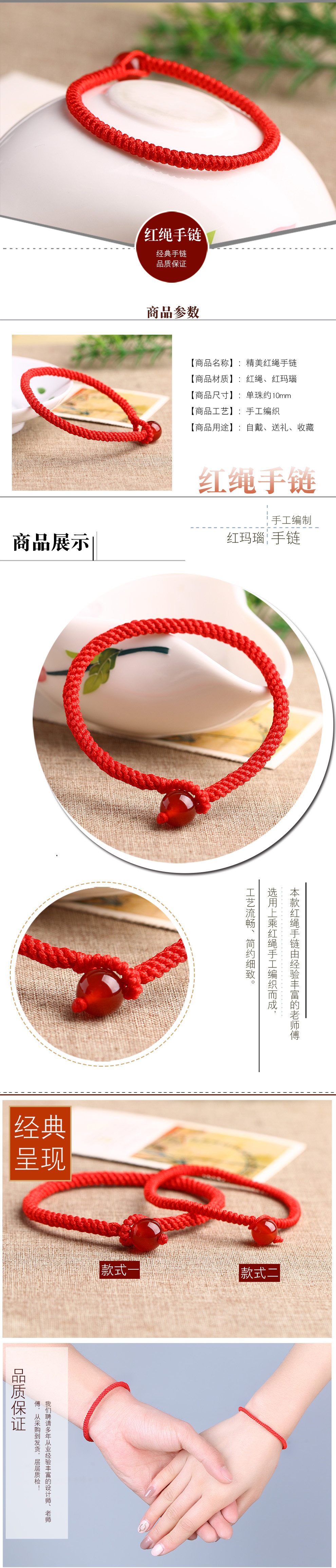 民族风纯手工编织手绳本命年转运红绳子男女手链