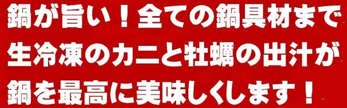 カニ鍋・海産鍋、カニ以外の野菜等、全ての鍋食材を美味しくする、生の冷凍のカニ!