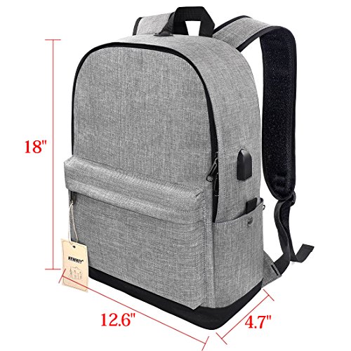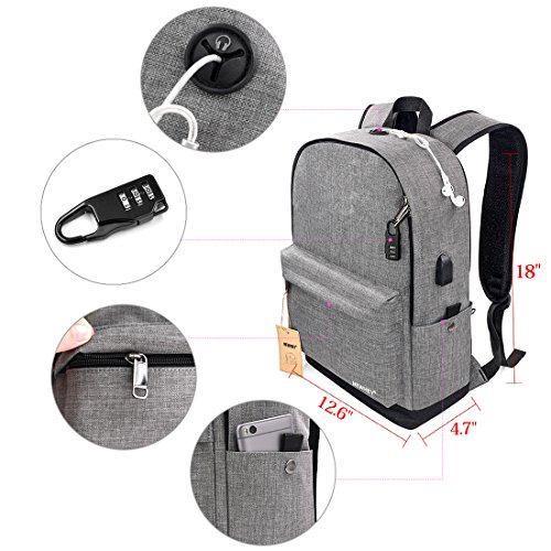 Studio : NEWHEY Publisher : NEWHEY Binding : Personal Computers Product Description *About NEWHEY: We NEWHEY is specialized in providing our consumer with high quality and cost-effective products, which aims to make the consumers really feel the charm of the product itself and insist a purpose of top customer service. *Specification: Material: Made of Oxford cloth and Polyester fabric Size: 18x 12.6 x 4.7 inch Weight: 0.52kg Color: Black / Gray Package included: 1*backpack, 1*built-in USB cable Applicable?Fits under 15 inch Laptop Notebook. Business or travelling for men/ women, slim USB charging backpack, college high school backpack. *Feature: 1. Made of durable oxford fabric which is light-weight Carrying and Large capacity, suitable for traveling, weekend getaway, college, and other outdoor activities in daily life. 2. Anti-theft backpack: An anti-theft lock that is specially prepared for our customer provide a good protection that prevent from unzipping the bag and stealing valuables. In addition, the zipper pocket behind the backpack, improves the safety factor of the backpack, you can put important thing inside to prevent thieves. 3.USB Port Design: Built in USB charger allow you put your Power Bank into backpack and connect internal USB cable, then let your charging cable insert USB port to connect your electronic device. Easy access and convenient to charge anywhere. The headset jack: allow you to listen your favorite music anytime, anywhere. 4 Two "S" curve padded shoulder strap thick sponge breathable thick pad?Made of breathable material, ergonomic design, which can ease the pressure of the shoulder muscles and cervical spine. The shoulder strap also has a plug-in function, and USB pocket.