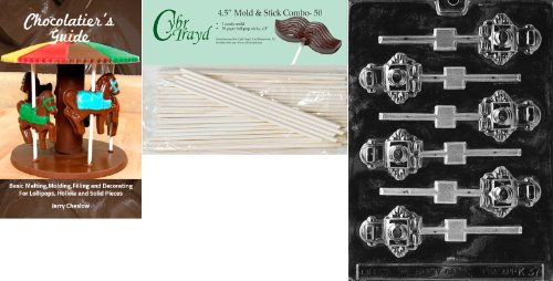 Cybrtrayd 45St50Bk-K037 'Robot Lolly' Kids Chocolate Candy Mold with 50 4.5-Inch Lollipop Sticks and Chocolatier's Guide