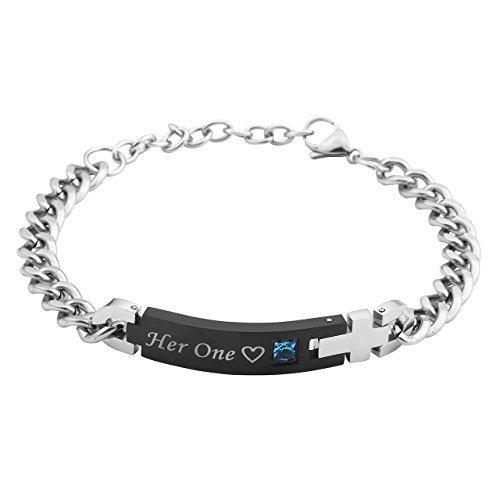 Zysta Paar Schmuck Her One und His Only Schrift Curb Kette Armband mit Gravur ein Paar partnerarmband Partner Ambander aus Edelstahl Parchen Armreifen fur verliebte Herren Dame