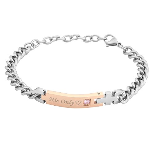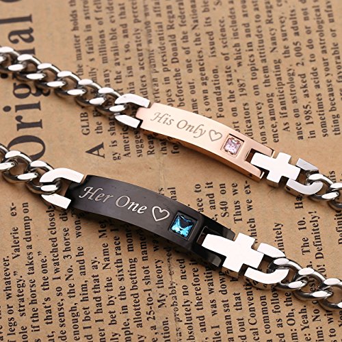 Grosse: Herrenarmband: Schrift "Her One", Schwarz, Fur Grosse des Handgelenks von 8.5"-10.3" (21.5cm-26cm); Schwarz Lange: 40*10*3mm, Kette Dick: 8mm; Damenarmband: Schrift "His Only", Rosegold, Fur Grosse des Handgelenks von 7.3"-9" (18.5cm-23cm); Rosegold Lange: 34*8*3mm, Kette Dick: 7mm