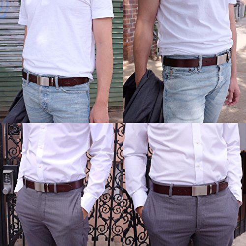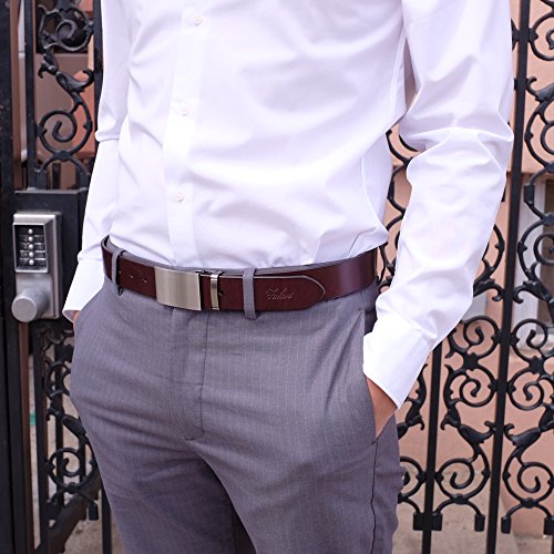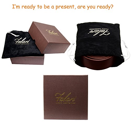 Falari Men's Dress Belt Jeans Belt 100% Full Grain Genuine Leather, 35mm Strap. Customer can trim down the strap to your exact waist size. The belt is packed in a velvet bag enclosed a elegant gift box.