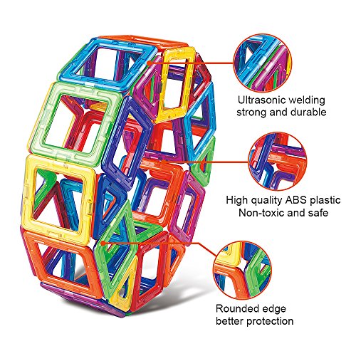 【Safe And Durable】: The magnets block toys use high quality original ABS material, all rainbow color pieces have been through ultrasonic process for better tightness, perfectly prevent breaking apart. Make it safe to DIY for chid with smooth hand-feeling.