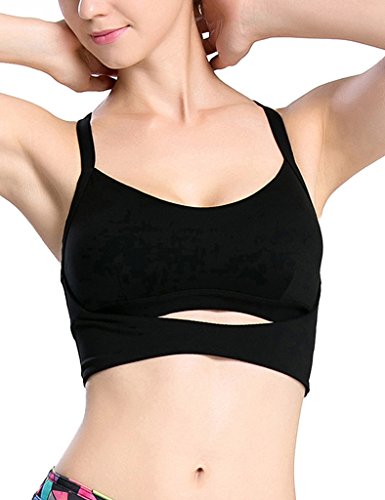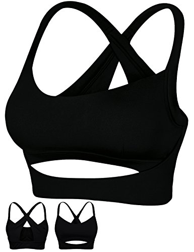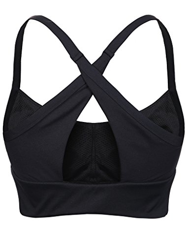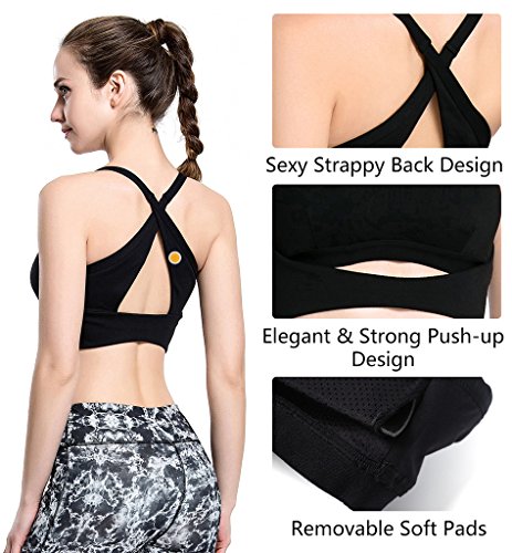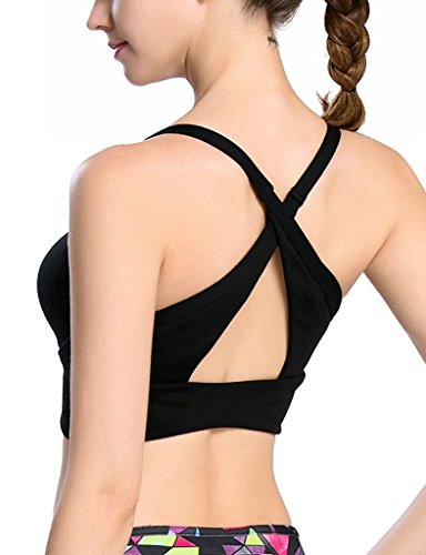Fastorm Cross Back Padded Sports Bra Wirefree Strappy Workout Yoga Top for Women