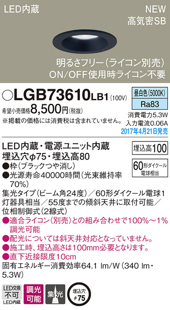 ●寸法(mm):埋込穴φ75・埋込高80