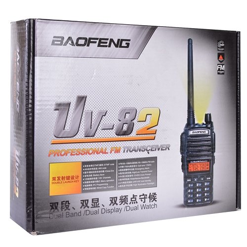The latest radio to come from Pofung! This radio has upped the bar on ham radio technology! Compared to previous Pofung products (UV-5R and the UV-B Series) this radio comes with a much louder speaker (1 watt!), a more solid design with larger buttons, and a better antenna. This radio can be programmed with or without a PC to also work on private repeater systems. (Save thousands compared to a Motorola / Kenwood setup)Product Features:25KHz/12.5KHz SwitchableFM Radio (65.0MHz-108.0MHz)Large LCD DisplayLED FlashlightHight /Low RF Power SwitchableVoice companding50 CTCSS/ 104DCS coder & tone searchingdual standbyPC programmableWide/Narrow Band(25kHz/12.5kHz)Transmitter time-out timer(TOT)High/Low TX power selectableBusy channel lock-out(BCLO)Specification:GeneralFrequency Range: 65-108MHz(FM Receive only),136-174MHZ and 400-520MHZ (TX/RX)Channel No: 128Frequency Stability: ±2.5ppmAntenna: High gain DualBand antennaAntenna Impedance: 50ΩOperating Voltage: DC 7.4VMode of operation : Simple or semi-duplexAntenna: SMA -FemaleEarpiece / mic type: Kenwood Plug typeDimension(W x H x D): 132 x 60 x 35 mm (not included antenna)Weight: 238g(including battery, antenna)Power adapter: Input: AC100-240V, 50-60Hz;Output: DC10V/500mA;Plug Type: USTransmitter:Output power: 5W / 1W (Max 5W)Modulation Mode: 16kΦF3E / 11kΦF3EMaximum deviation: 5kHz(Wide) / 2.5kHz(Narrow)Spurious Radiation: 7μW Adjacent Ch. power: ≤-65dB(Wide) / ≤-60dB(Narrow)Pre-emphasis characteristics: 6dBCurrent: ≤1.6A(5W)CTCSS/DCS deviation: 0.5±0.1kHz(Wide) / 0.3±0.1kHz(Narrow)Intermediation sensitivity: 8-12mvIntermediation distortion: ≤10%Package included: POFUNG UV-82 Dual Band FM Transceiver7.4V/1800mAh BL-8 Battery Antenna Power Adapter Belt Clip Hand Strap Battery Charger User Manual.
