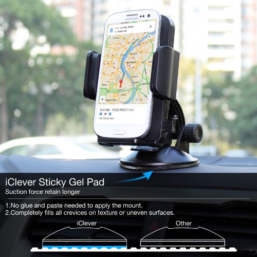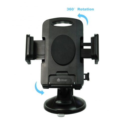 Car Mount, iClever 360 Degree Rotation Universal Phone Holder, Windshield Dashboard iPhone / Samsung Car Cradle for iPhone 6s 6 plus 5s / Galaxy S6 edge note 5 and More Smartphones, Black