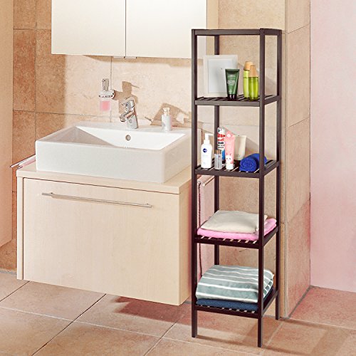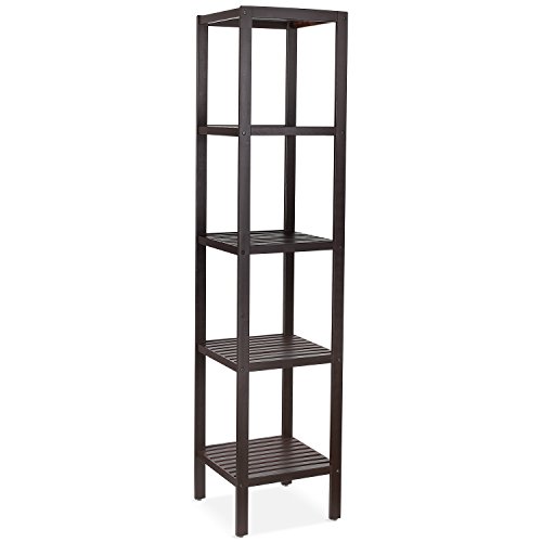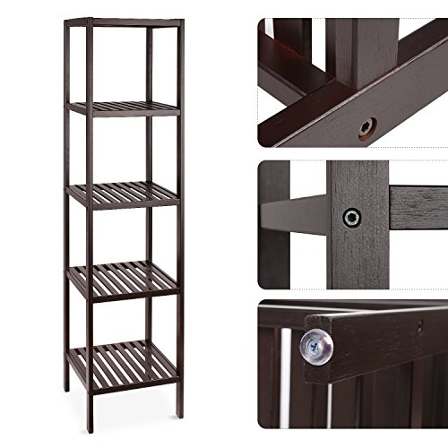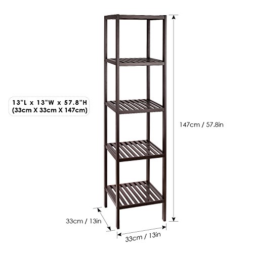 HOMFA Bamboo Bathroom Shelf 5-Tier Tower Free Standing Rack Multifunctional Storage Organizer(Retro Color)