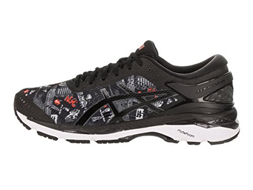 -. Binding : Apparel -. Brand : ASICS -. Department : mens -. Feature : I.G.S (Impact Guidance System) Technology: ASICS design philosophy that employs linked componentry to enhance the foot's natural gait from heel strike to toe-off. / Fluid Fit Upper: ASICS Fluid Fit upper technology combines multi-directional stretch mesh with stretch reinforcements that adapt to the athlete's foot, creating a truly customized glove-like fit. / Heel Clutching System Technology: Exoskeletal heel counter provides improved support and creates improved heel fitting environment. / ComforDry Lasting: This lasting material features plush underfoot comfort while providing excellent moisture management and a high level of breathability. / ComforDry X-40 Sock liner: This premium sock liner features higher rebound properties while providing excellent moisture management and a high-level of breathability. -. Label : ASICS -. Manufacturer : ASICS -. Model : T7J4N.9099 -. PackageQuantity : 1 -. ProductGroup : Shoes -. ProductTypeName : TECHNICAL_SPORT_SHOE -. Publisher : ASICS -. Studio : ASICS -. Title : ASICS Men's Gel-Kayano 24 NYC Running Shoe