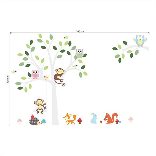 -. Title : Cartoon Animals Owls Monkeys Mushrooms Trees Wall Stickers Removable Wall Decal for Girls and Boys Nursery Baby Room Children's Bedroom