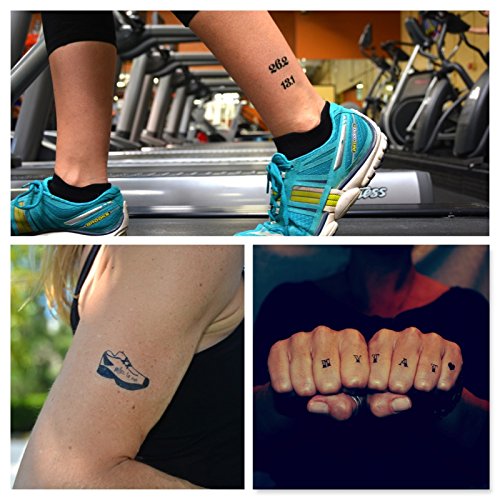 Set of 6 Running Temporary Tattoos - 26.2 Marathon, 13.1 Half Marathon, Alphabet & Numbers Body Art Tattoos - Cut apart to create your own custom running...
